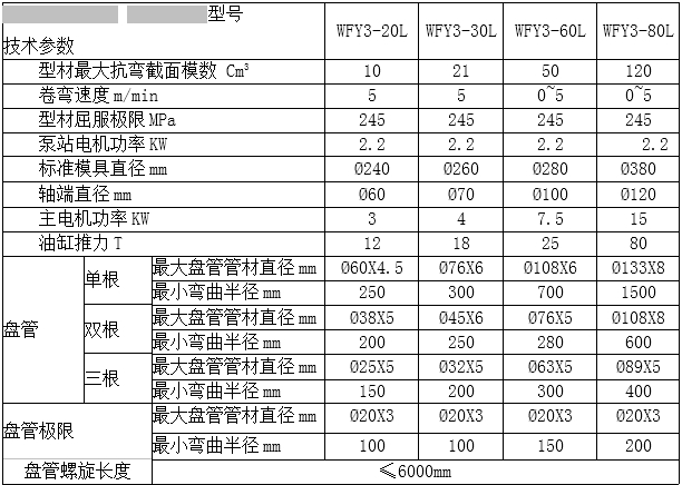 WFY3-20L/30L/60L/80L三輥盤管機參數(shù)