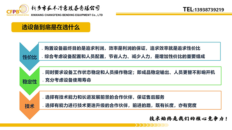 新鄉(xiāng)市長豐冷彎設(shè)備有限公司,是一家通過認(rèn)證的、擁有自主知識產(chǎn)權(quán)和自主研發(fā)制造能力,獨(dú)立進(jìn)行冷彎成型設(shè)備的制造、銷售,和服務(wù)于一體的高新技術(shù)企業(yè)。